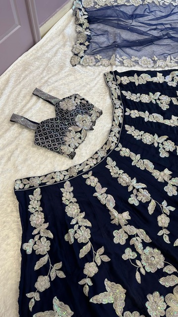 New Bollywood wardrobe team Kasturi silky Georgette lehenga with rainbow sequins and dori work