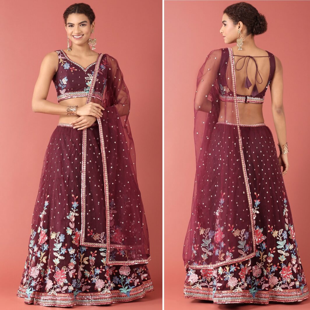 New designer soft net lehenga with thread and sequin embroidery work