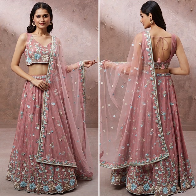 Skirt comes semi stitched max 42 inches waist and blouse unstitched