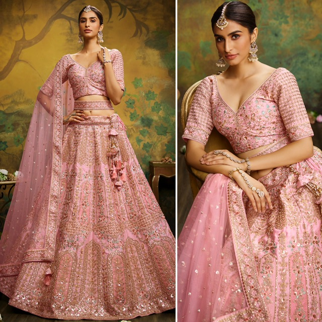 New premium range pure silk lehenga with moti and zarkhan embroidery work