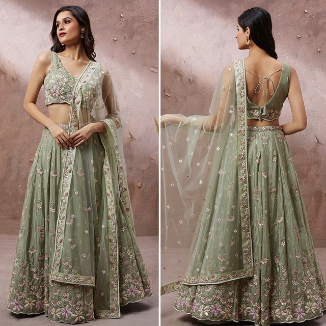 Skirt comes semi stitched max 42 inches waist and blouse unstitched