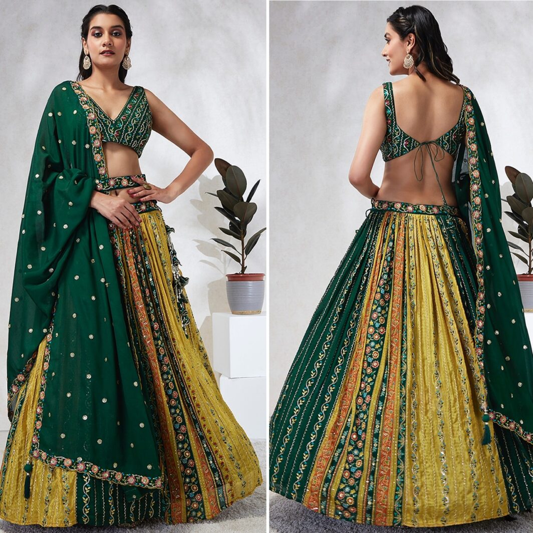 New designer chiffon lehenga with position print and sequin work