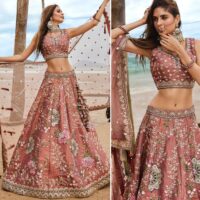 New premium range lehenga soft net lehenga with mirror, thread and moti embroidery work