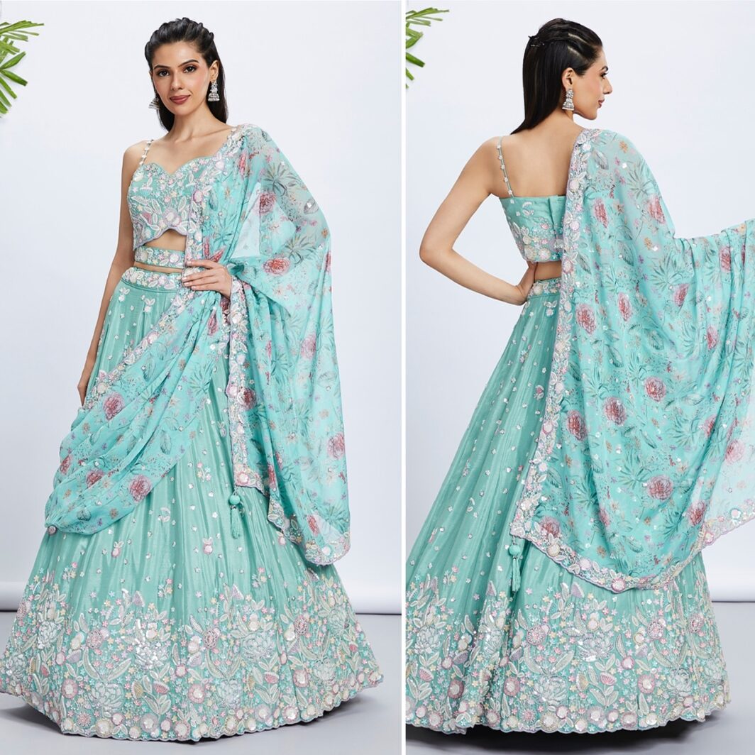 New designer chiffon lehenga with sequin and thread embroidery work