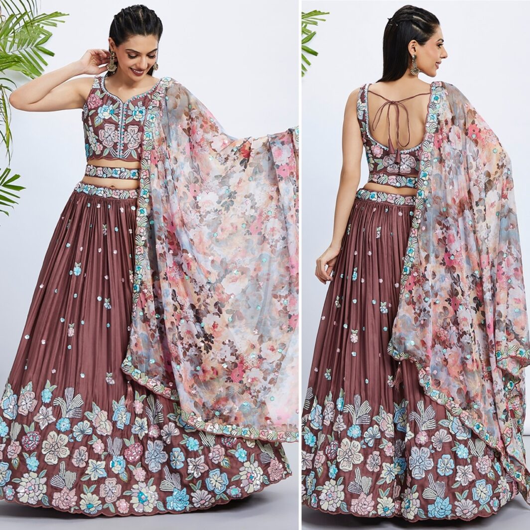 New designer pure georgette lehenga with sequin and thread embroidery work