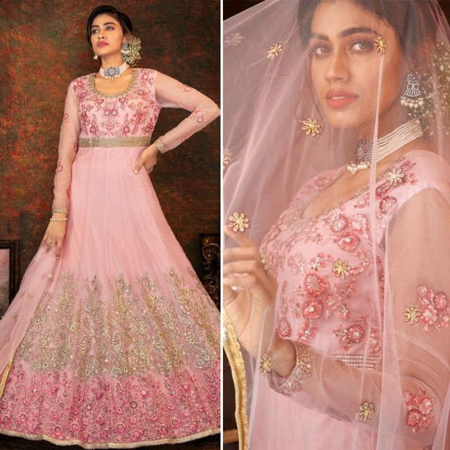 New designer net gown with embroidery work
