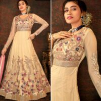 New designer net gown with embroidery work