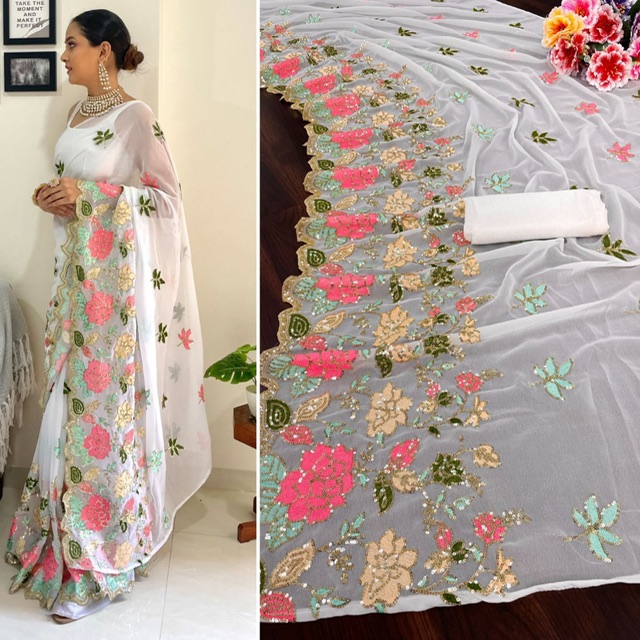 New Bollywood wardrobe team georgette sequin and multi thread work saree