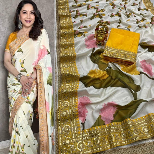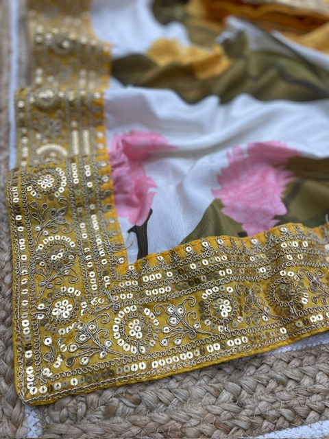 New Bollywood wardrobe team chinnon floral print saree with sequin work border