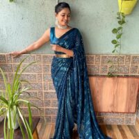 New Bollywood wardrobe team ready to wear Georgette sequin saree with belt and unstitched blouse (WhatsApp 07545098986 for video)