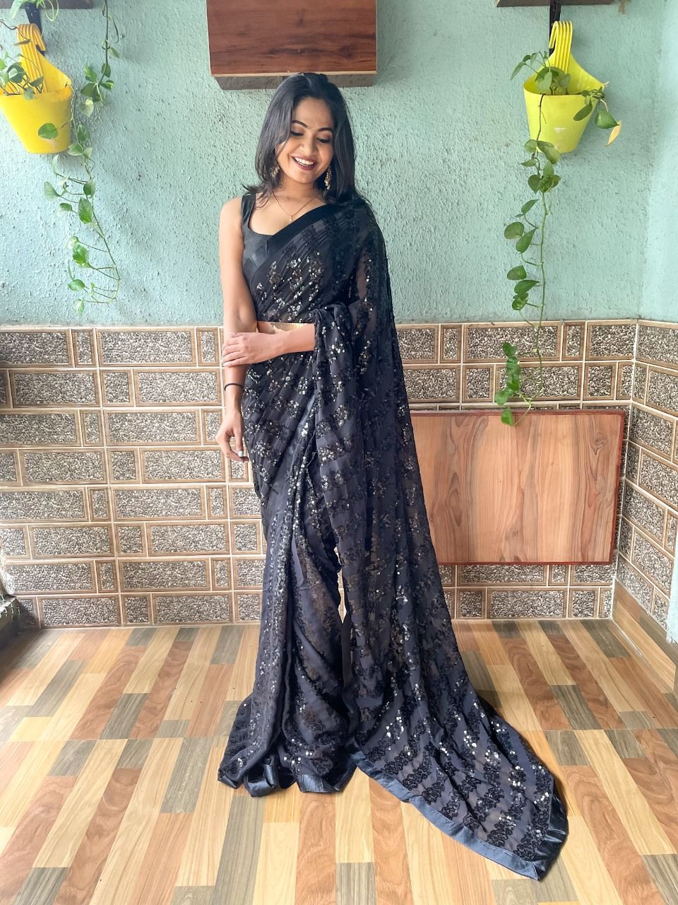 New Bollywood wardrobe team ready to wear Georgette sequin saree with belt and unstitched blouse (WhatsApp 07545098986 for video)
