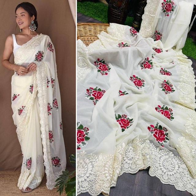 New Bollywood wardrobe team Georgette silk saree with thread and cut work