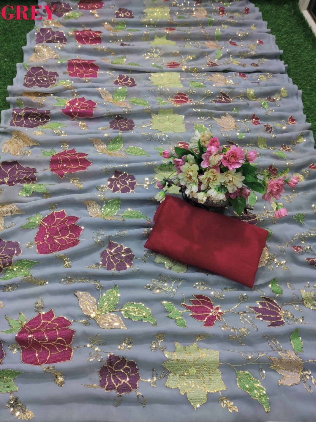 New Bollywood wardrobe georgette saree with fancy sequin and thread work