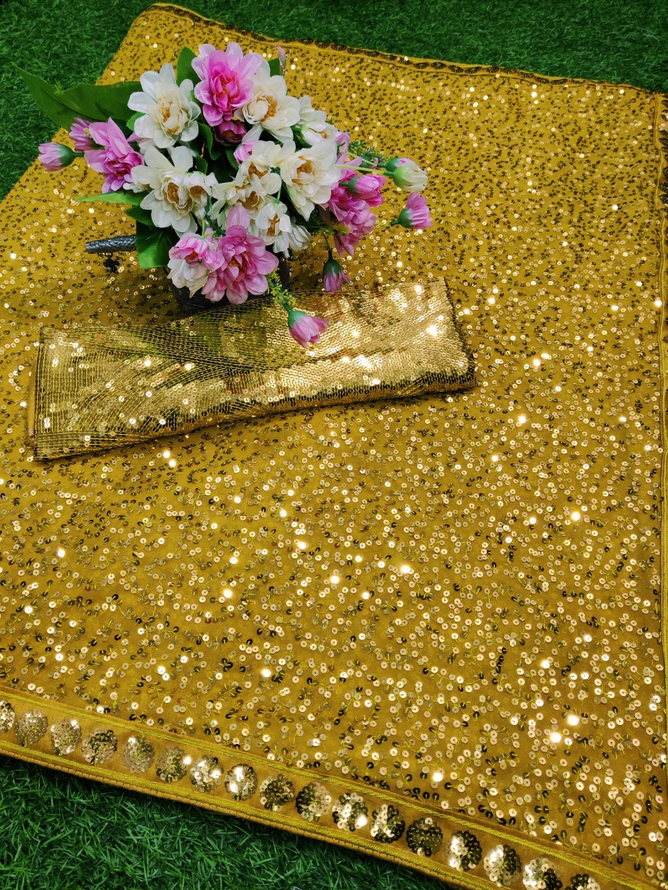 New Bollywood wardrobe team georgette sequin saree with unstitched sequin blouse