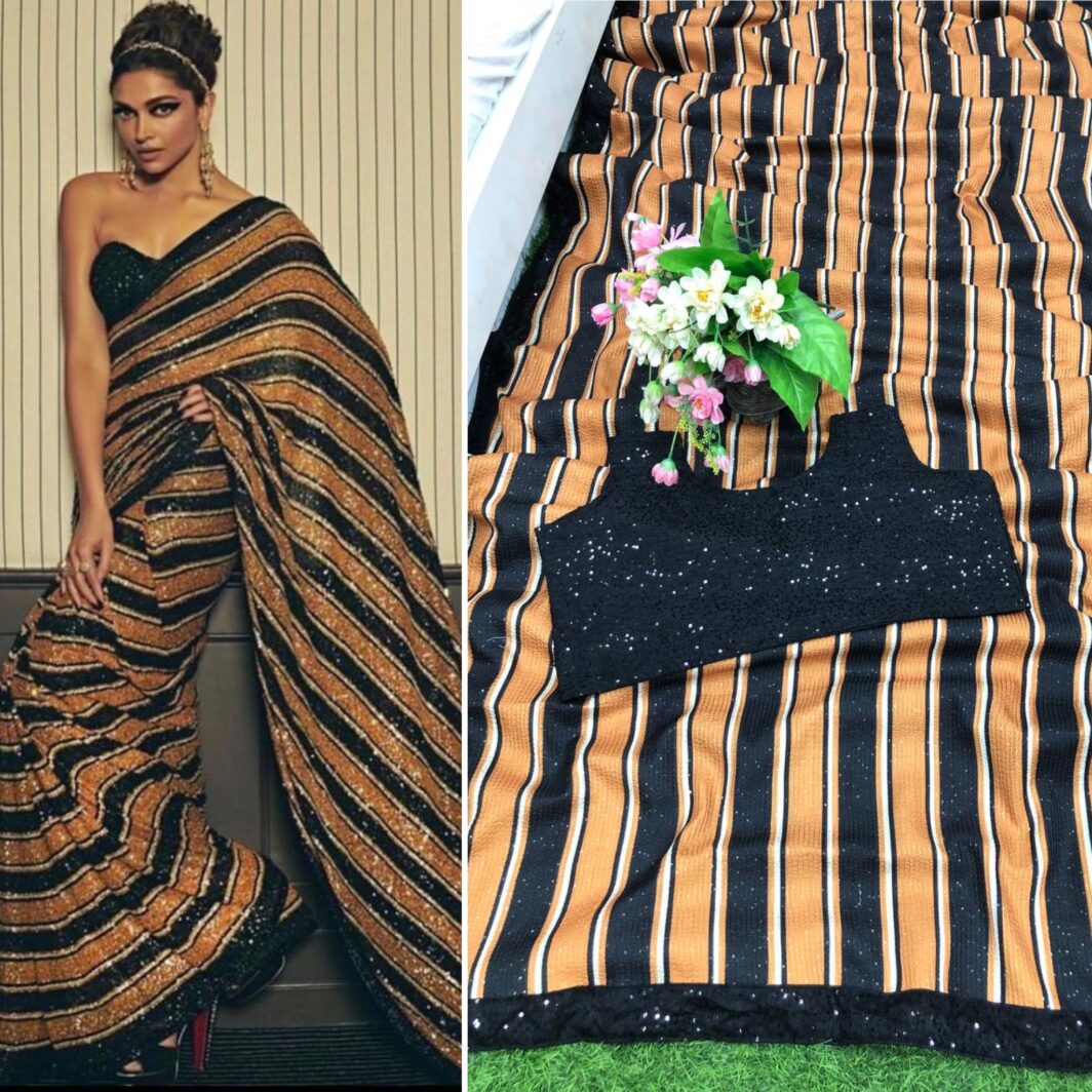 New Bollywood wardrobe team slub silk digital printed sequin saree with unstitched sequin blouse