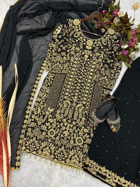 New Bollywood wardrobe team ready to wear georgette palazzo suit with embroidery work
