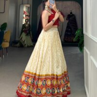 New ready made soft tussar silk lehenga with bandhej and patola print