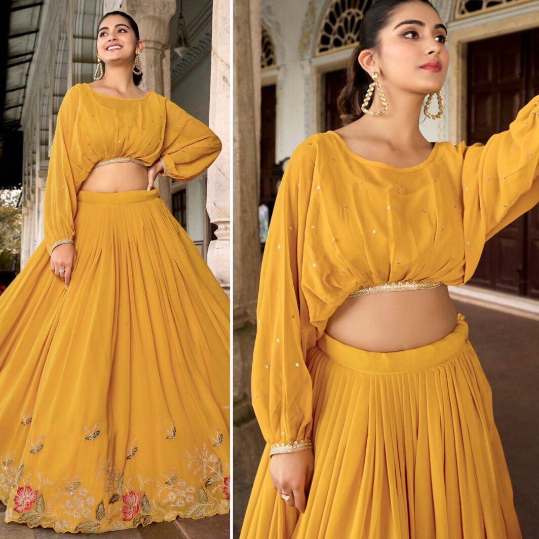 New designer ready made georgette lehenga with thread and sequin embroidery work
