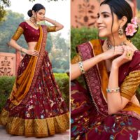 New designer soft tussar silk lehenga with minakari foil print