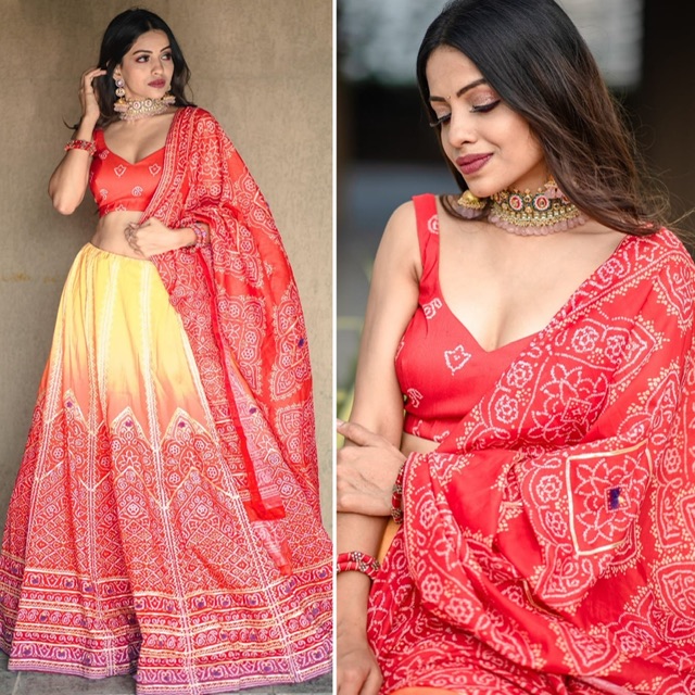 Skirt comes semi stitched max 42 inches waist and 41 inches length and blouse unstitched