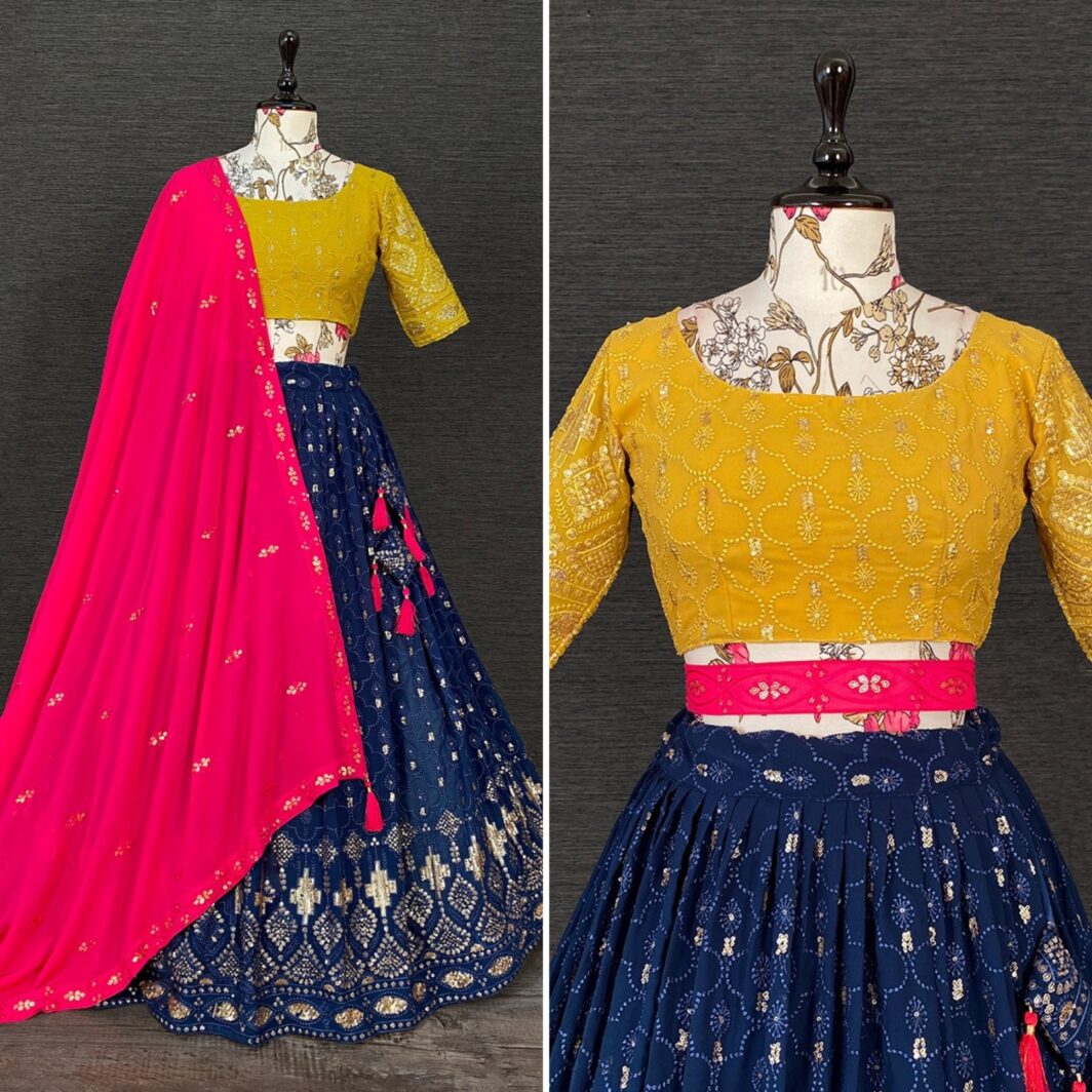 New Bollywood wardrobe team georgette sequin and thread work lehenga