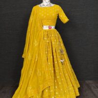 New Bollywood wardrobe team georgette lehenga with thread and paper mirror embroidery