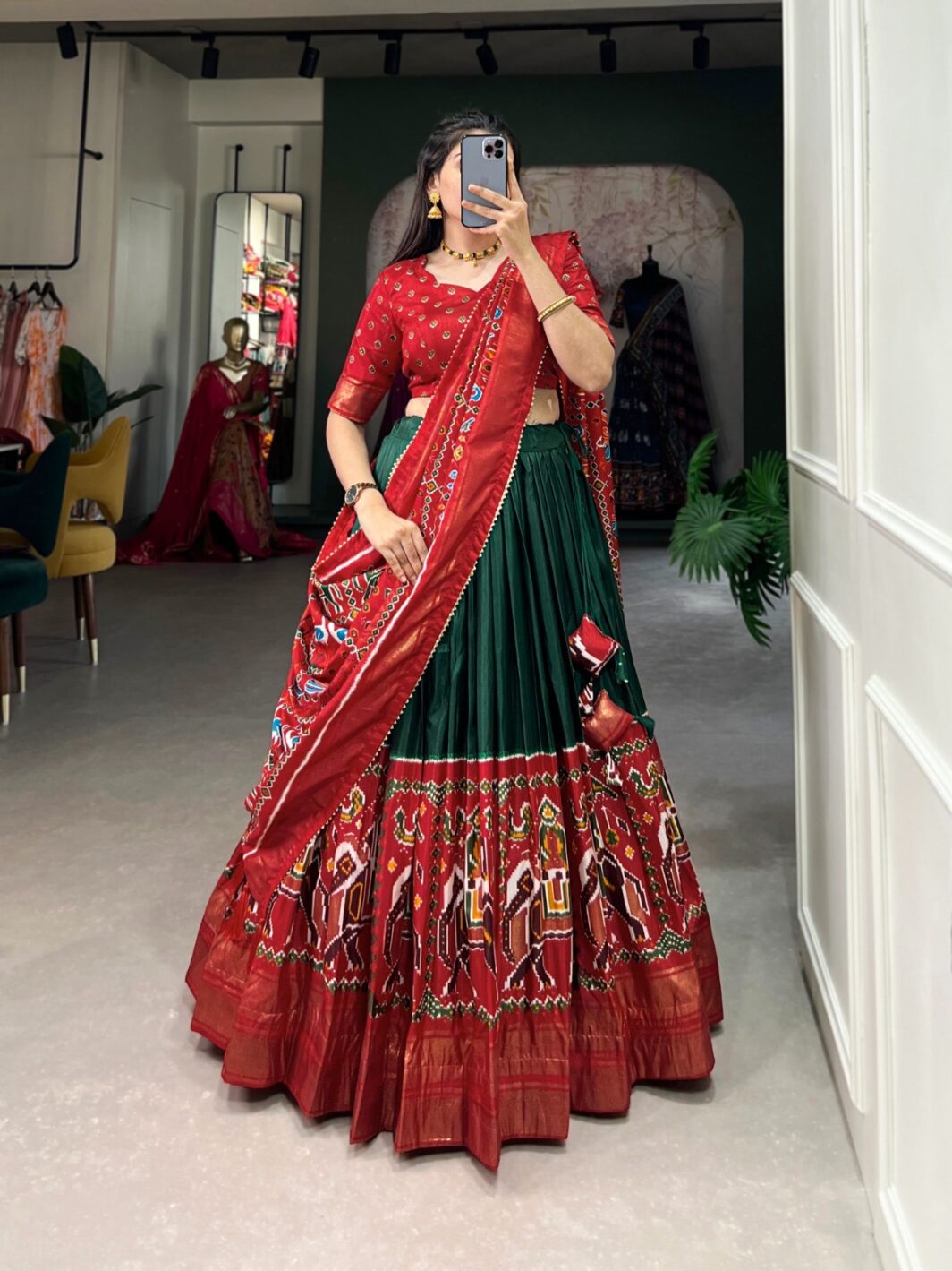 New designer dola silk lehenga with patola print
