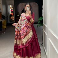Skirts stitched free size max 42 inches waist and 41 inches length and blouse unstitched