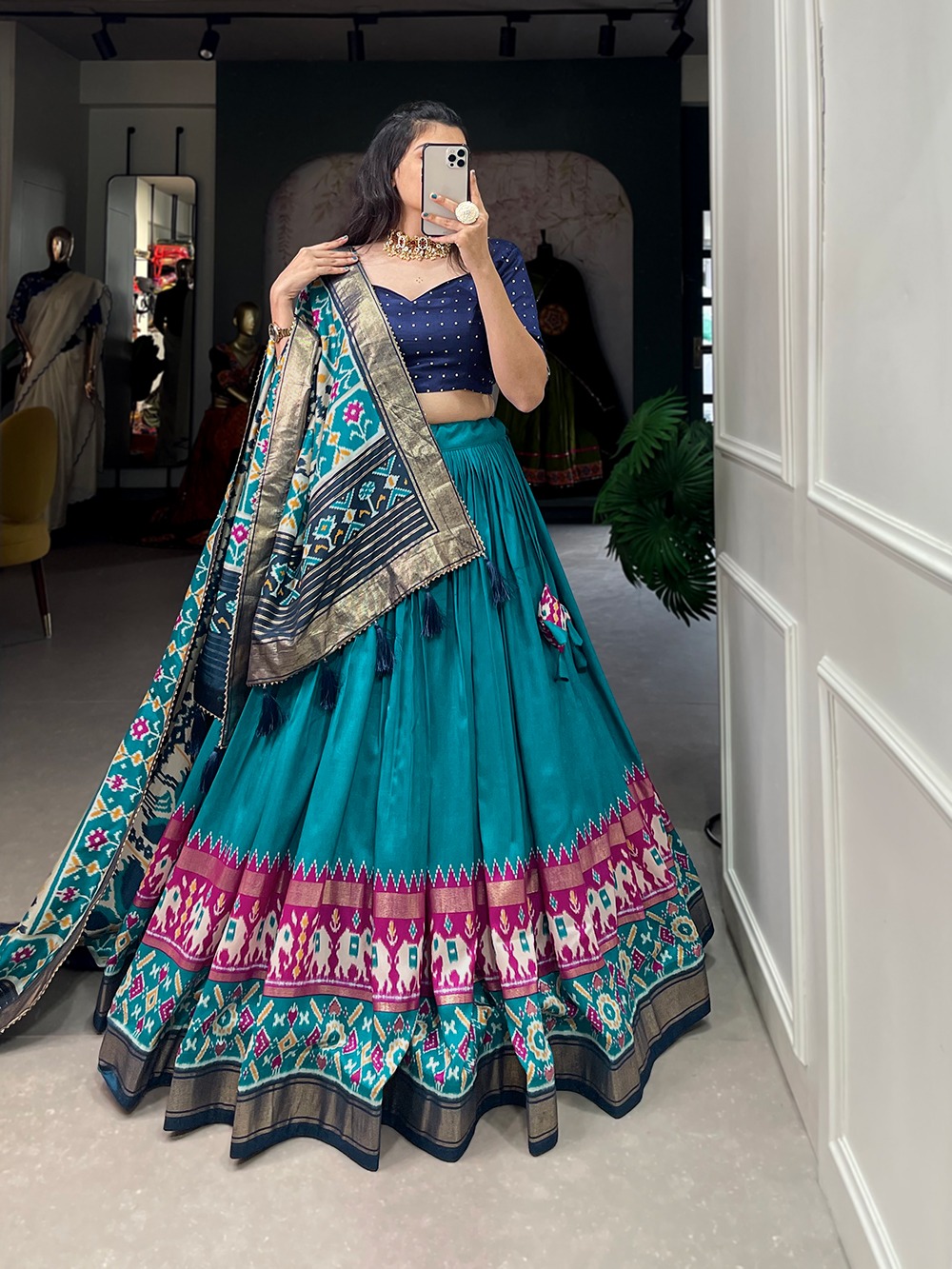 Skirt comes stitched free size max 42 inches waist and blouse unstitched