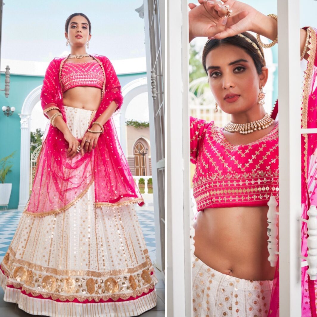 New designer georgette lehenga with sequin and thread embroidery