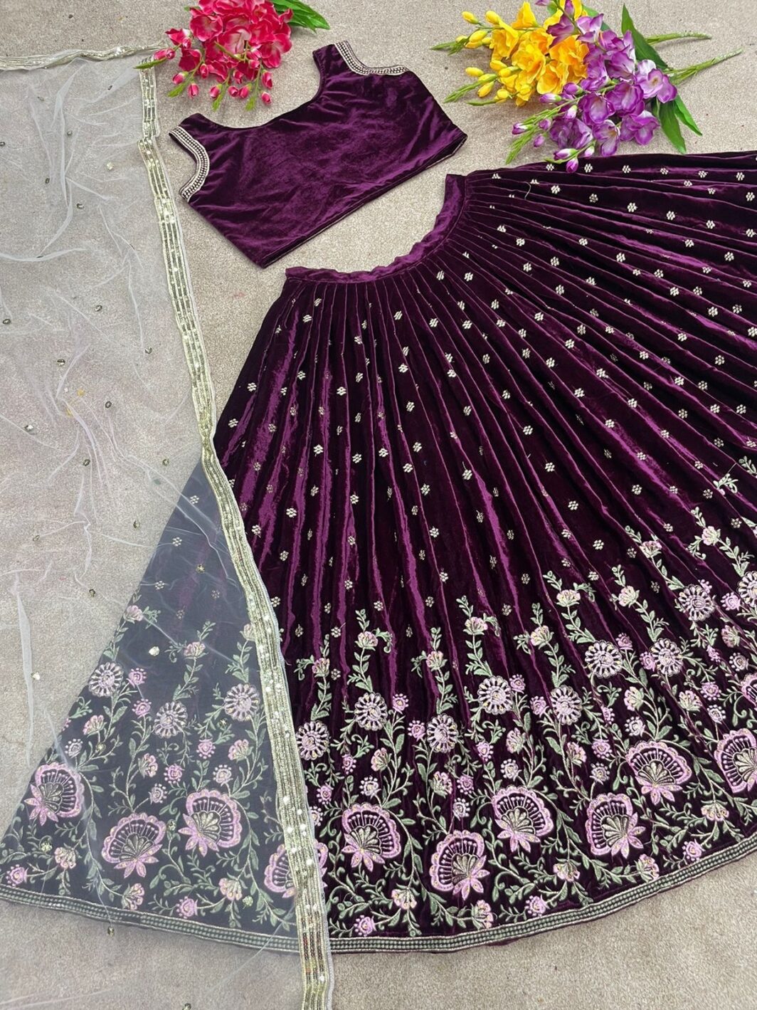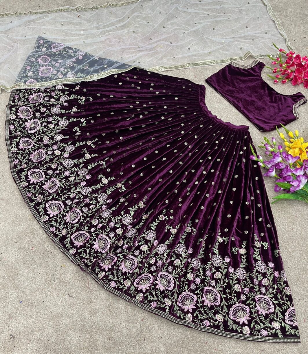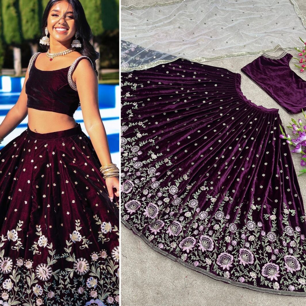 New Bollywood wardrobe team velvet lehenga with embroidery work
