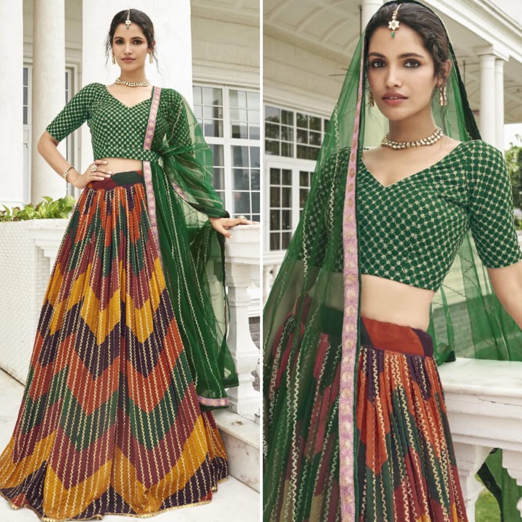 New designer georgette digital printed lehenga with sequin and thread embroidery