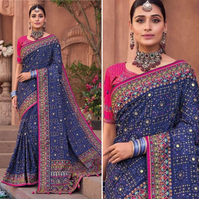 New premium range banarasi soft silk saree with kachhi work and unstitched blouse