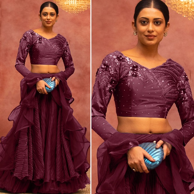 Skirt comes semi stitched max 42 inches waist and blouse unstitched