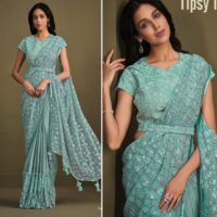 New designer one minute ready to wear crepe silk saree with embroidery work