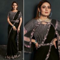 New designer satin crepe silk ready to wear saree with embroidery work