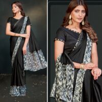 New designer ready to wear one minute satin crepe silk saree with digital and sequin embroidery work