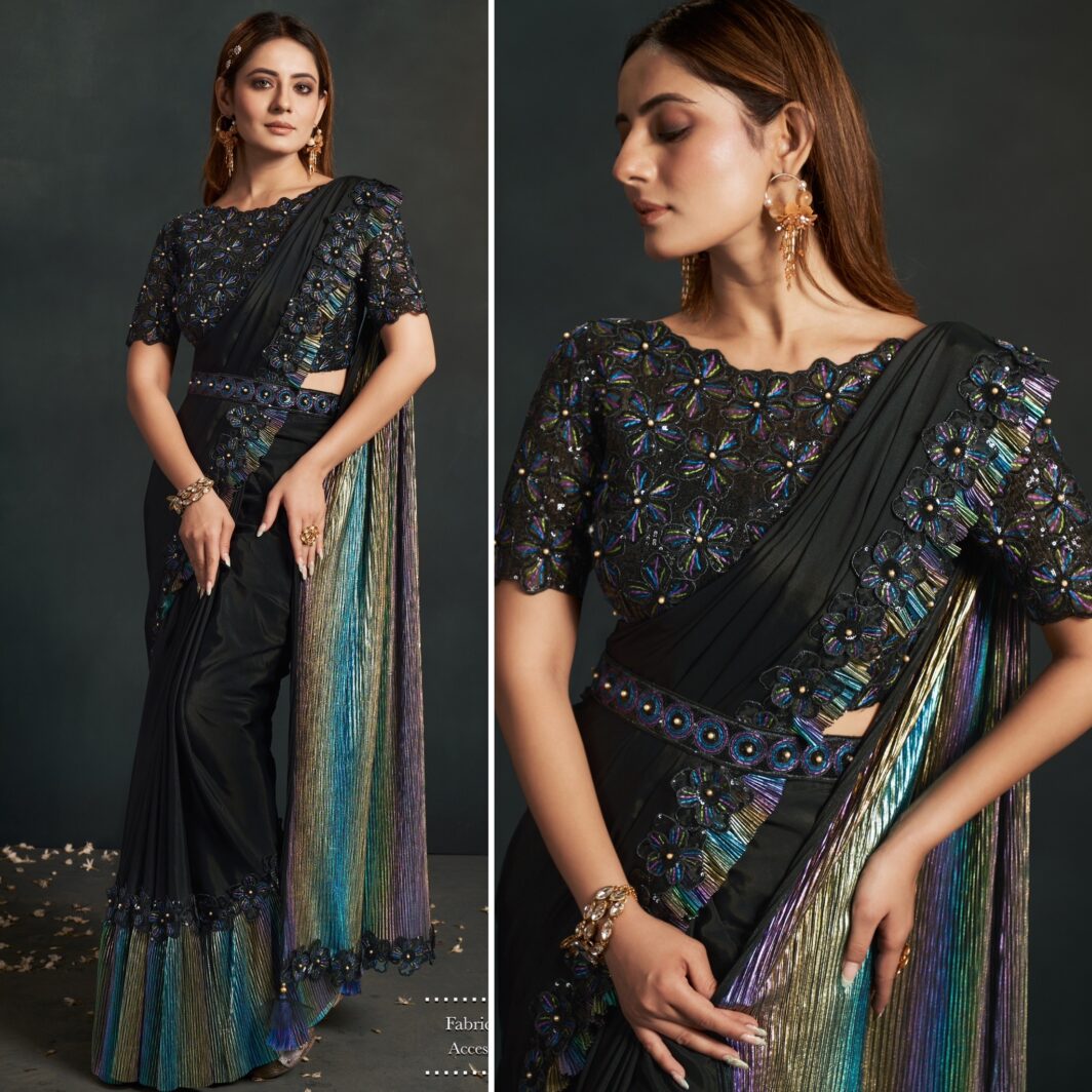 New designer satin crepe georgette ready to wear saree with embroidery work