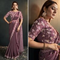 New designer satin crepe silk ready to wear saree with embroidery work