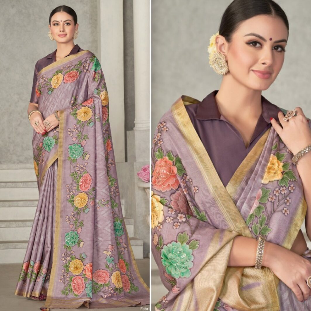 New designer tussar silk saree with unstitched blouse