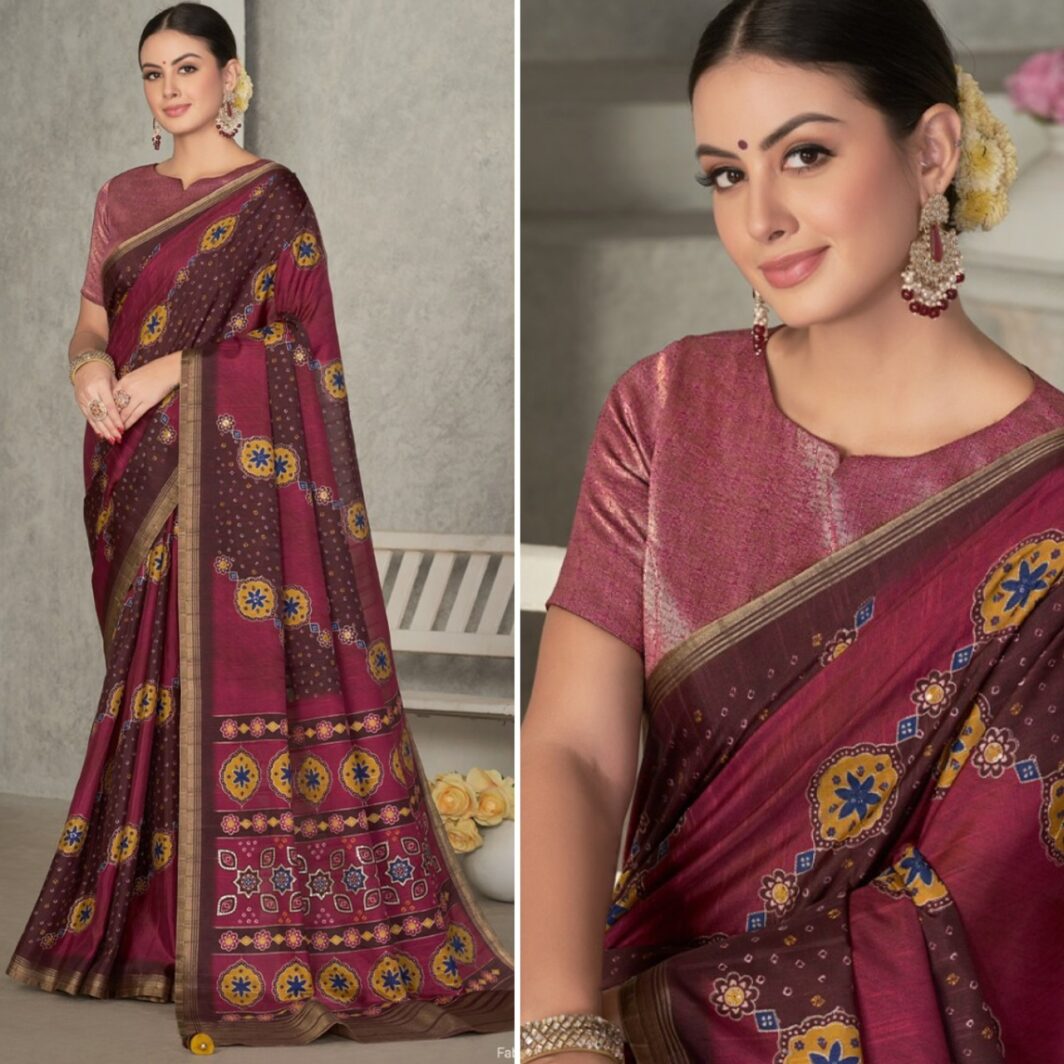 New designer tussar silk saree with unstitched blouse