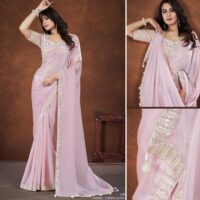 New designer crepe satin silk saree with embroidery work