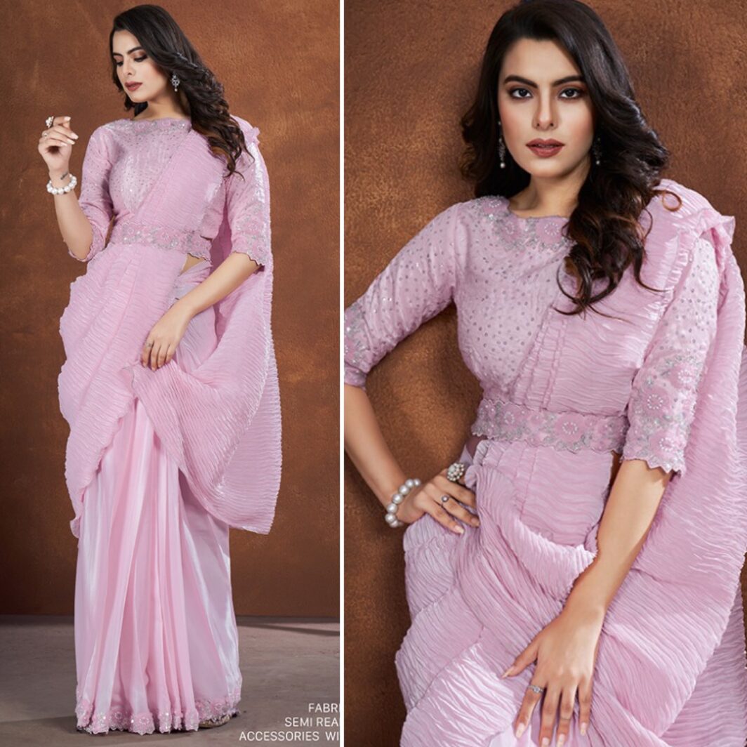New designer crepe satin silk saree with embroidery work