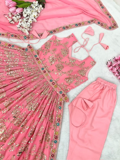 New Bollywood wardrobe team ready made georgette sequin and multi thread work suit