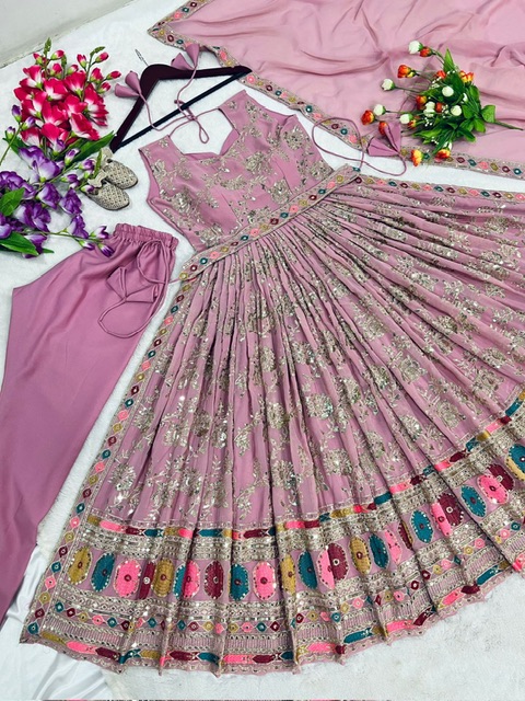 New Bollywood wardrobe team ready made georgette sequin and multi thread work suit
