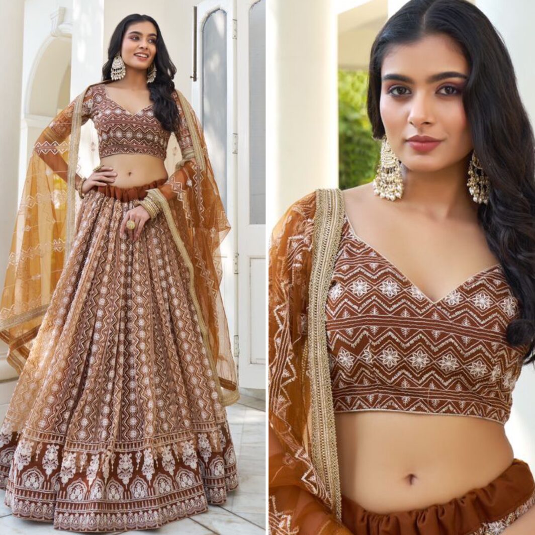 New designer net lehenga with thread and sequin embroidery work