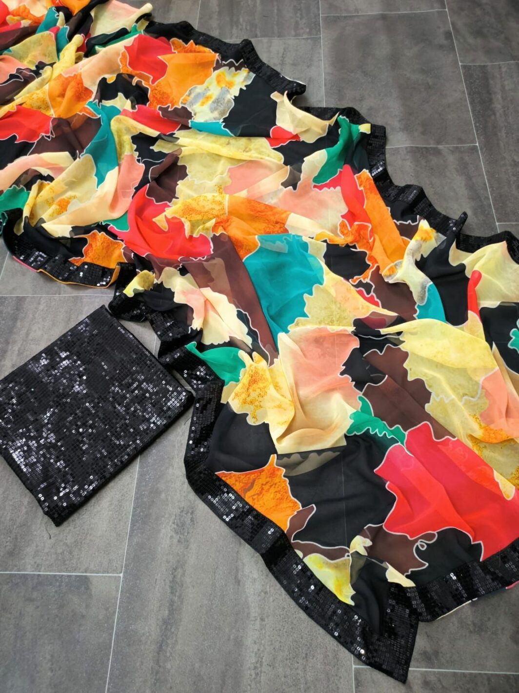 New Bollywood New Bollywood wardrobe team georgette digital printed saree with sequin border and blouse