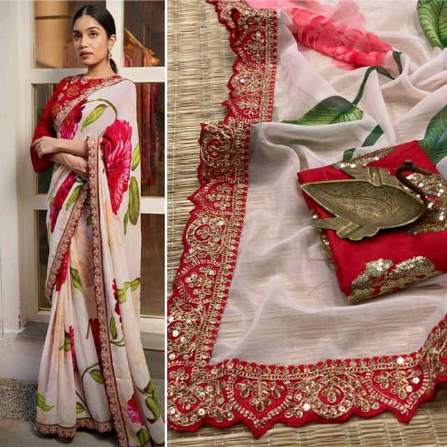 New Bollywood wardrobe team Georgette digital printed saree with sequin border