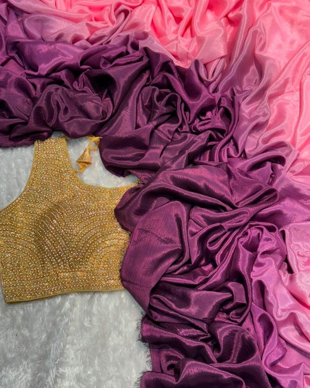 New Bollywood wardrobe team soft zari tissue ready to wear one minute saree with ready made pearl and diamond work blouses