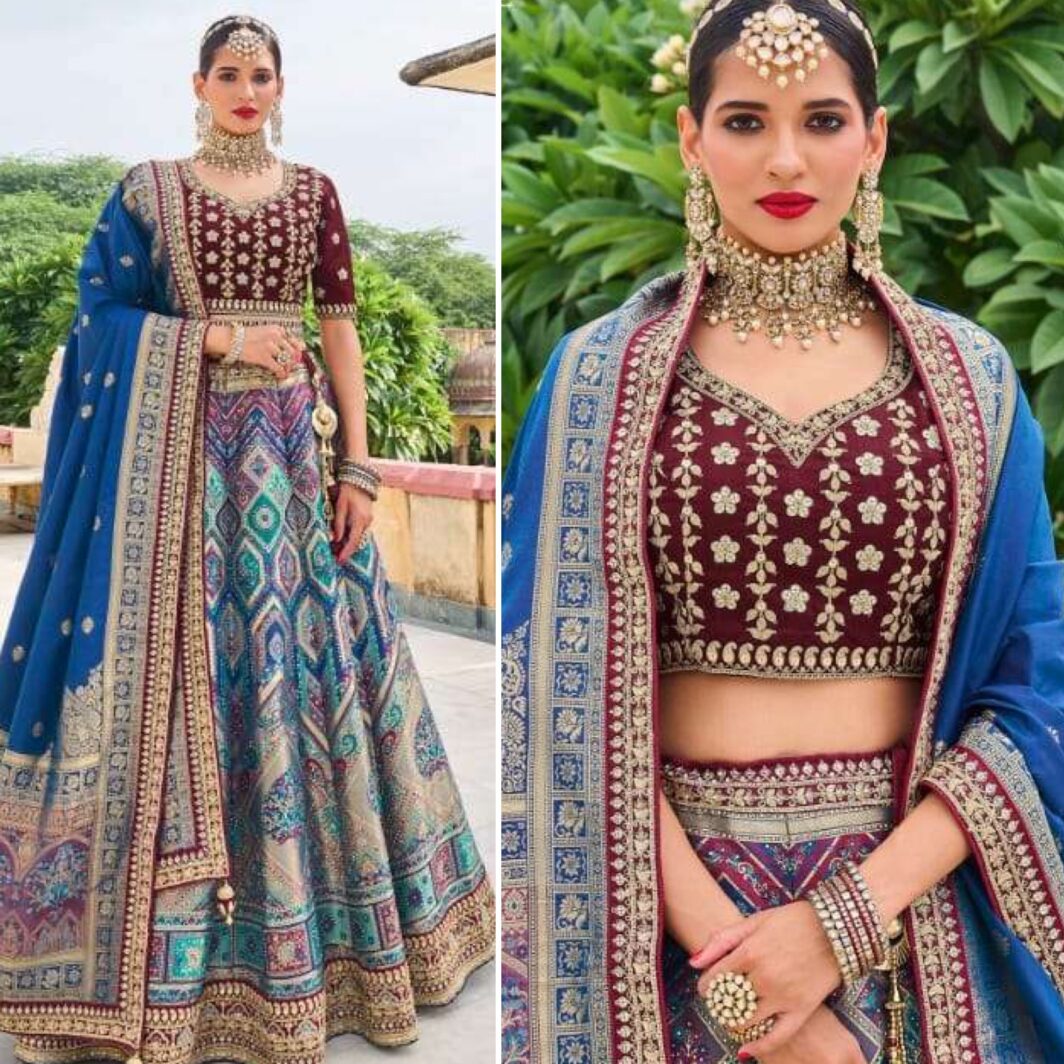 Skirt comes semi stitched max 42 inches waist and blouse unstitched